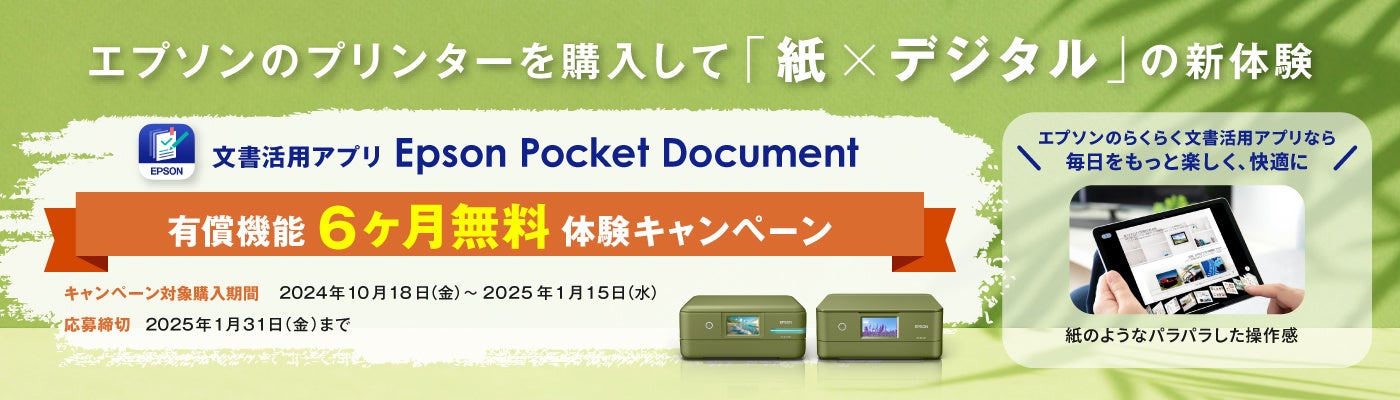 『エプソンの新商品プリンター購入で「紙×デジタル」の新体験を始めよう!文書活用アプリ「Epson Pocket Document」の有償機能6ヶ月無料体験キャンペーン』