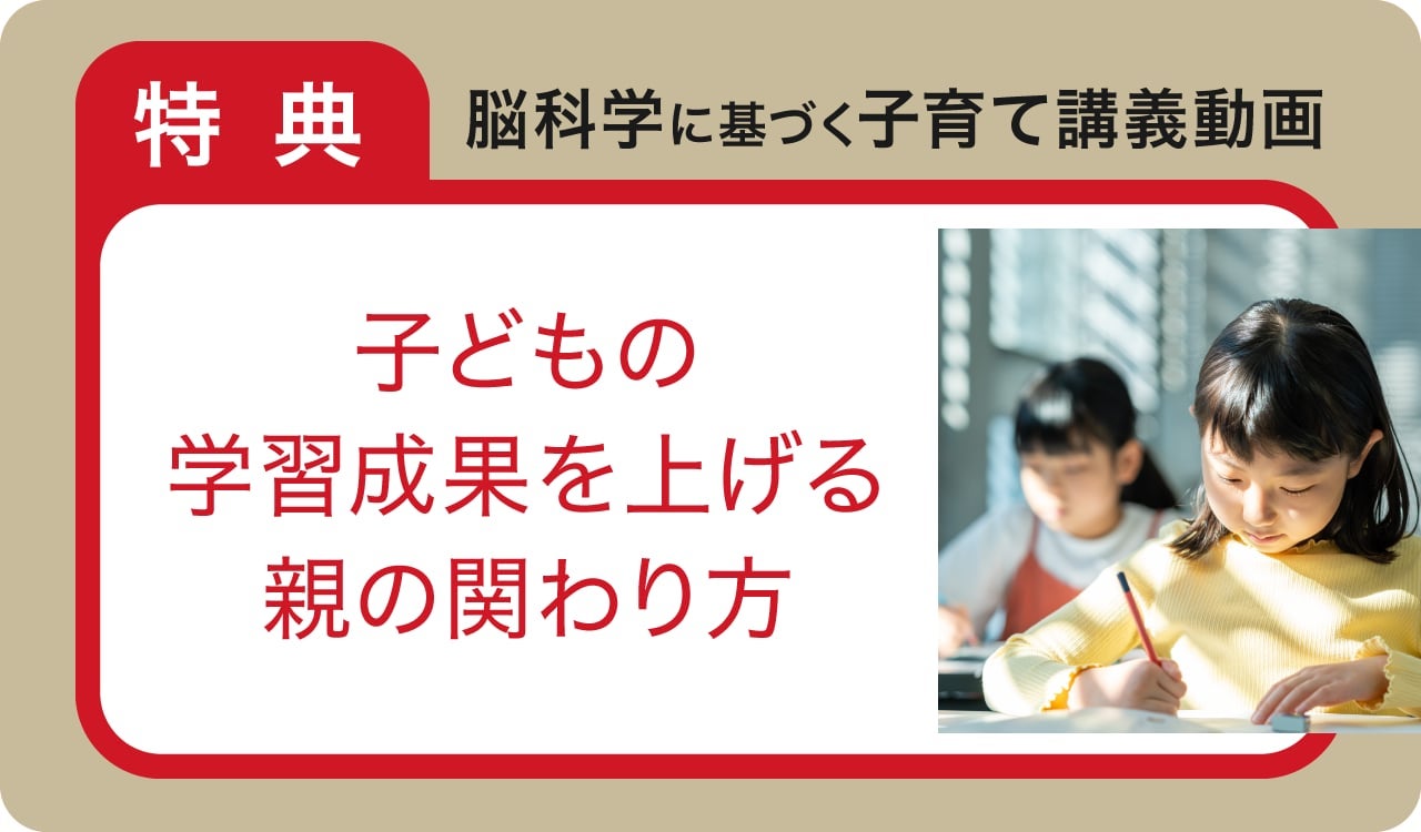今回はより理解を深めていただけるように、脳科学に基づく子育て講義動画『子どもの宿題の成果を上げる大人の関わり方』を無料でプレゼントいたします。