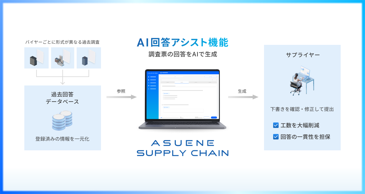 「ASUENE SUPPLY CHAIN」にAI活用で回答作成を効率化する「サプライヤー向けAI回答アシスト機能」を追加実装