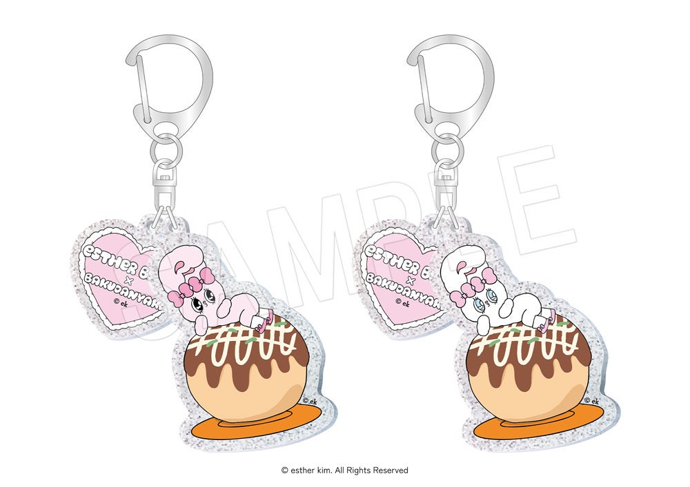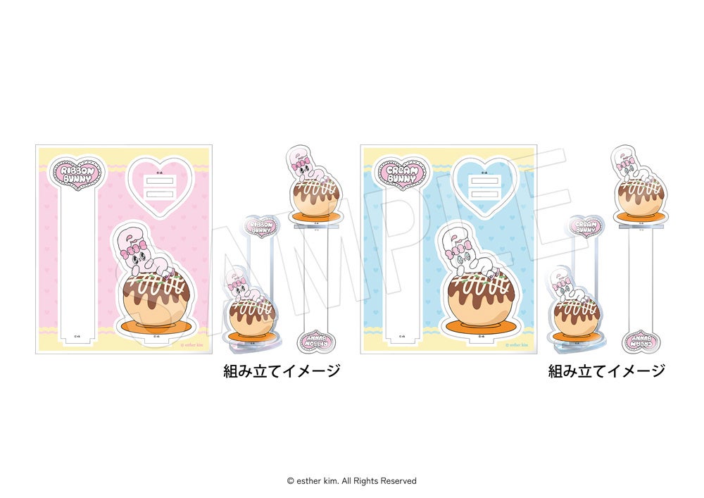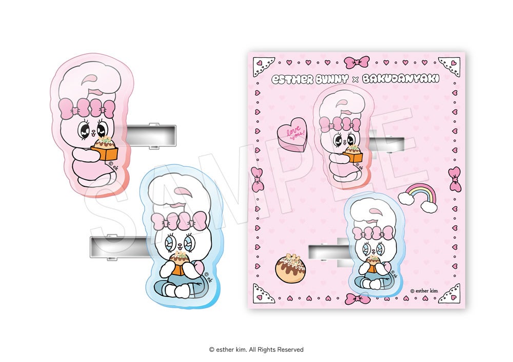 ほかほかの"ばくだん焼"を囲んでピクニックを楽しむ"エスターバニー"の描き下ろしイラストを使用した「フォトプロップスアクリルスタンド」や「アクリルヘアクリップ」、さらには手のひらサイズのキュートな「ぬいぐるみマスコット」など多種多様な新作アイテムが登場!
