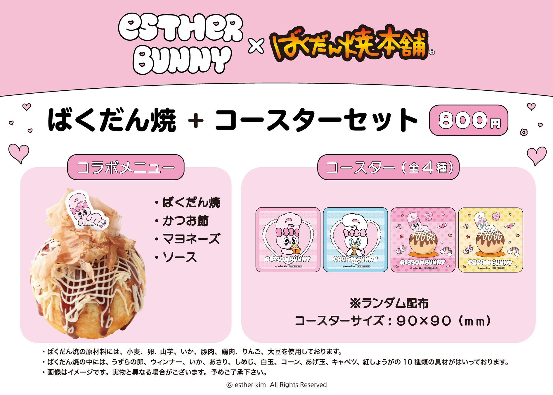 韓国発の大人気キャラクター「エスターバニー」と「ばくだん焼本舗」のコラボが開催決定!描き下ろしコラボイラストを使用したグッズなどが多数登場!