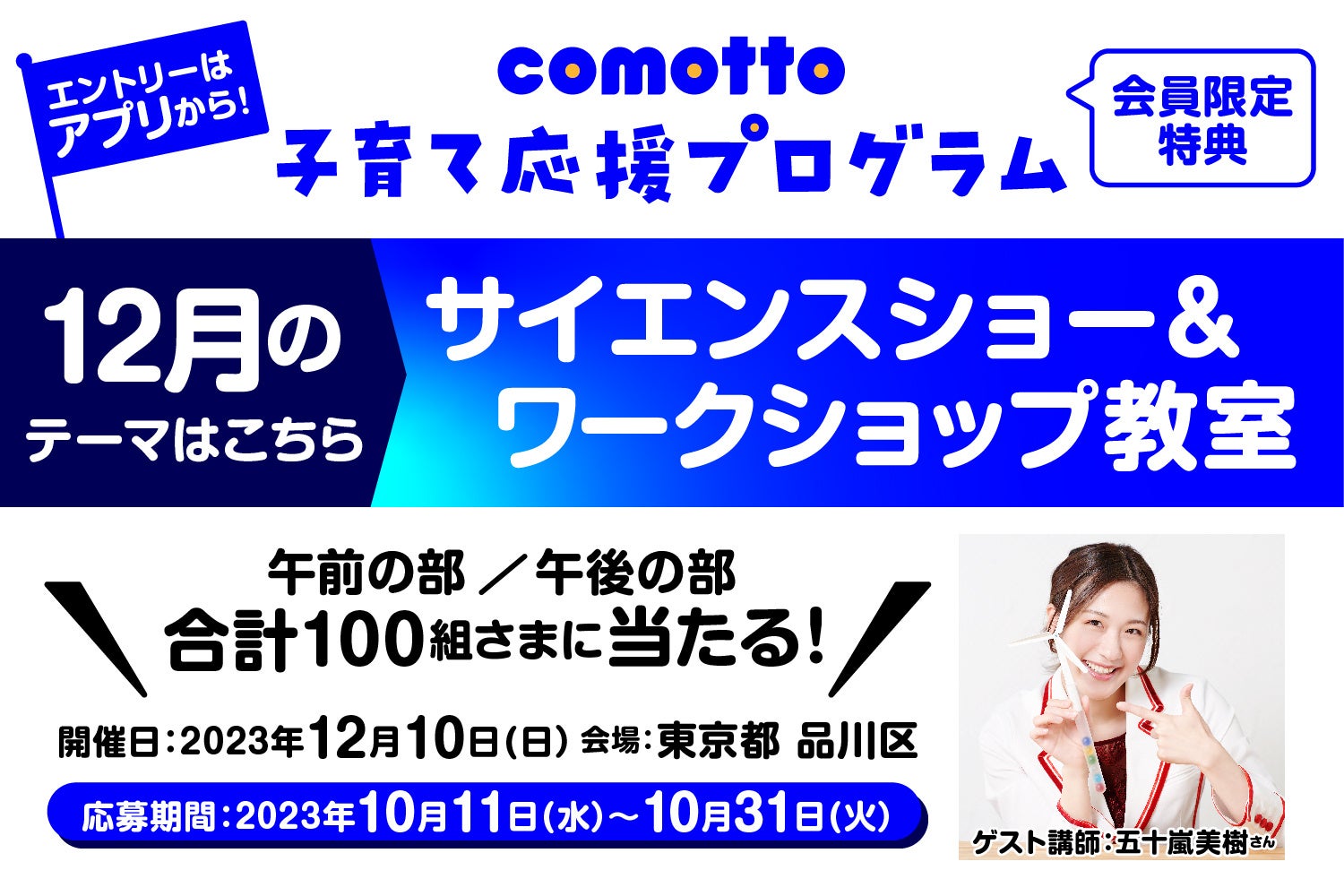 『学研キッズネット』がコンテンツ制作および配信をサポート! NTTドコモが運営する「comotto 子育て応援プログラム」会員向けのイベント『楽しく学ぼう!子どもサイエンスアカデミー』が応募開始