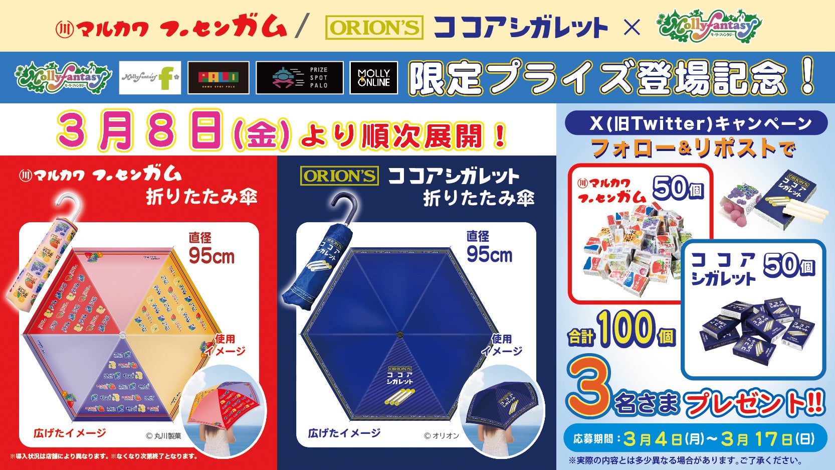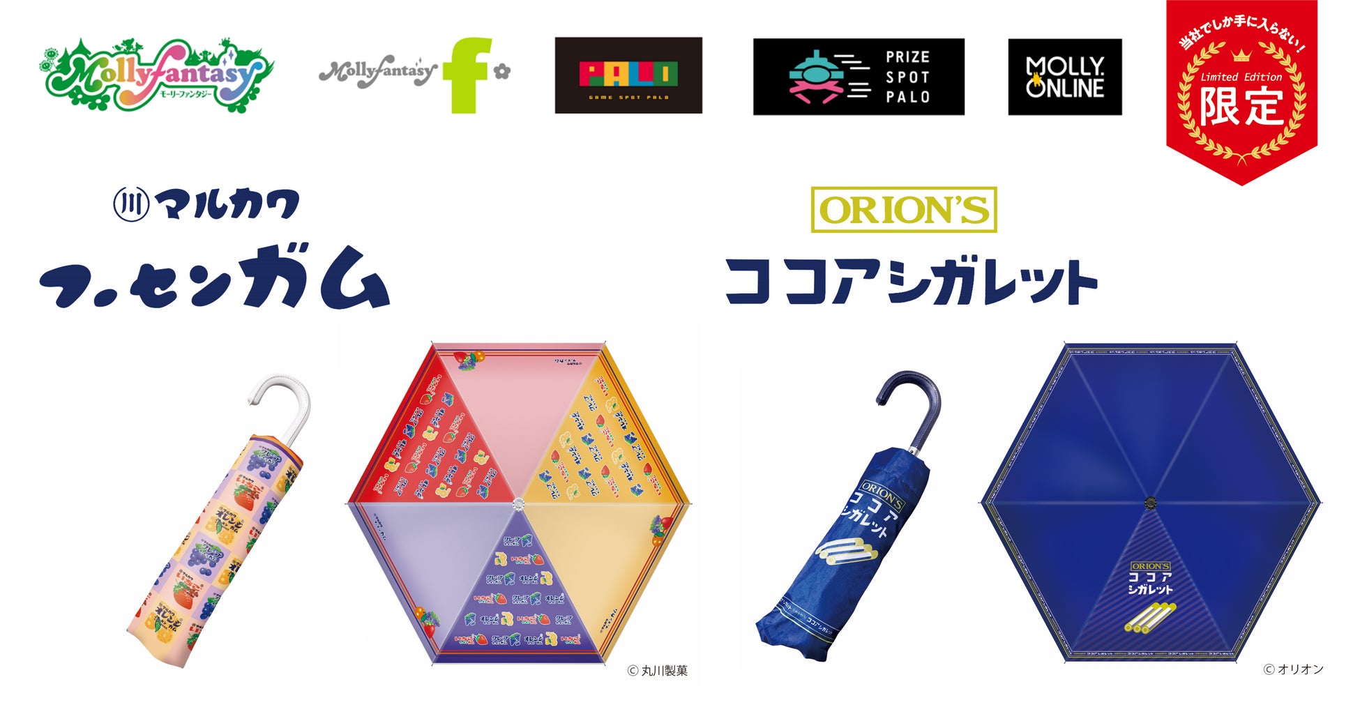『マルカワマーブルガム』と『ココアシガレット』の折りたたみ傘がモーリーファンタジー・PALO限定プライズになって3月8日(金)より展開開始