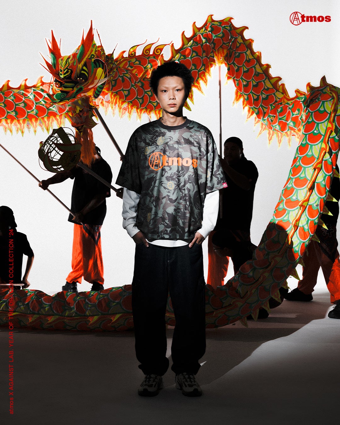 前回のコラボレーションの成功を受けて、AGAINST LAB.とatmosは再びタッグを組み、伝統文化に敬意を表した「The Year of the Dragon」コレクションは、恐れ知らず、勇気、自由探求の象徴であるドラゴンの精神を体現しております。
