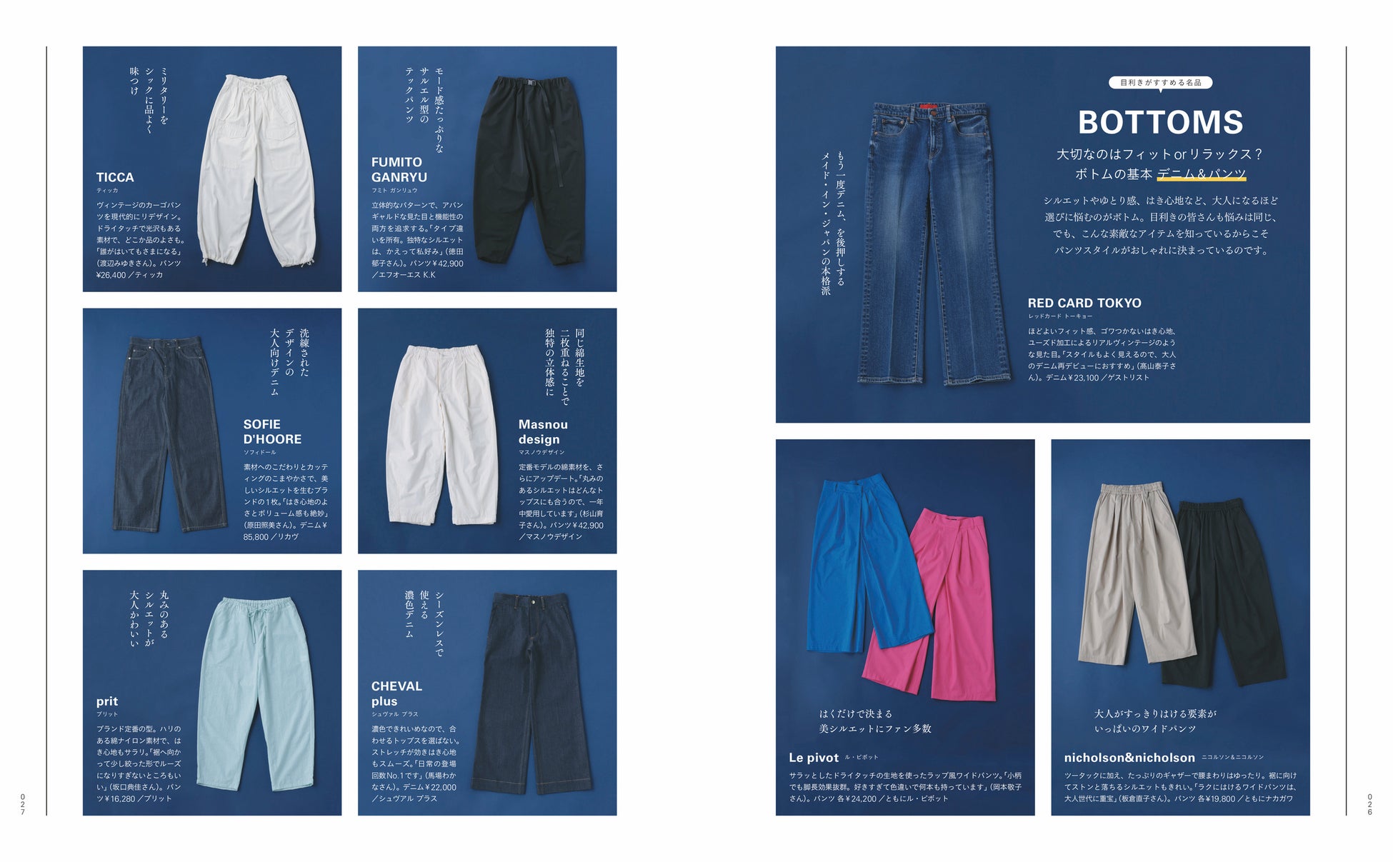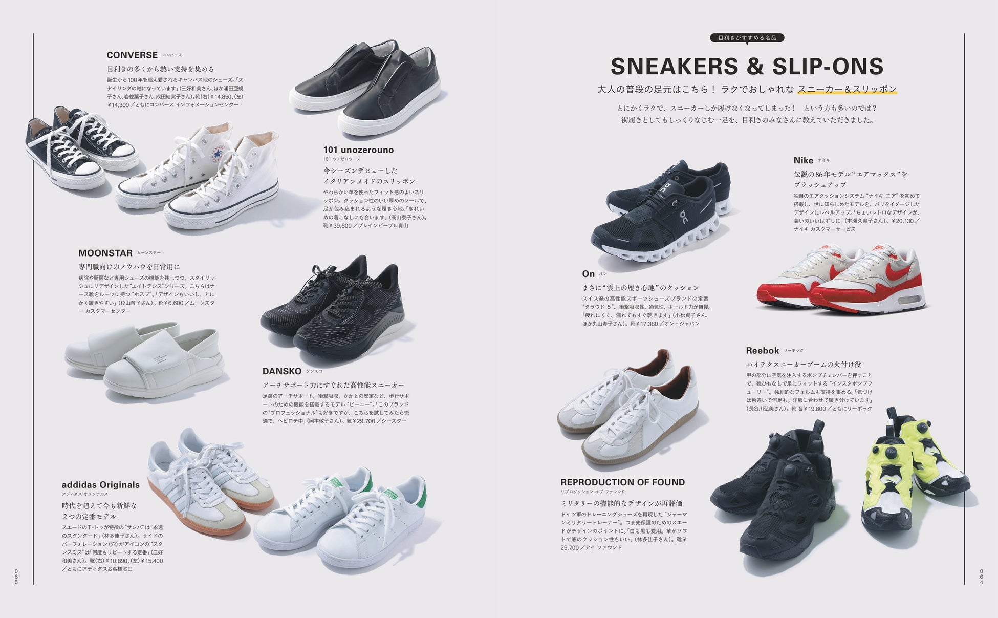 カジュアルなのにきれいめにはけるパンツに、心地よさとデザイン性を兼ね備えたインナー、今あらためて選び直したいスニーカーやジュエリーなど、おしゃれな大人たちが太鼓判を押す服や小物がズラリと並ぶ、ボリュームたっぷりの名品カタログも。目利きによる推薦コメントも必読です。