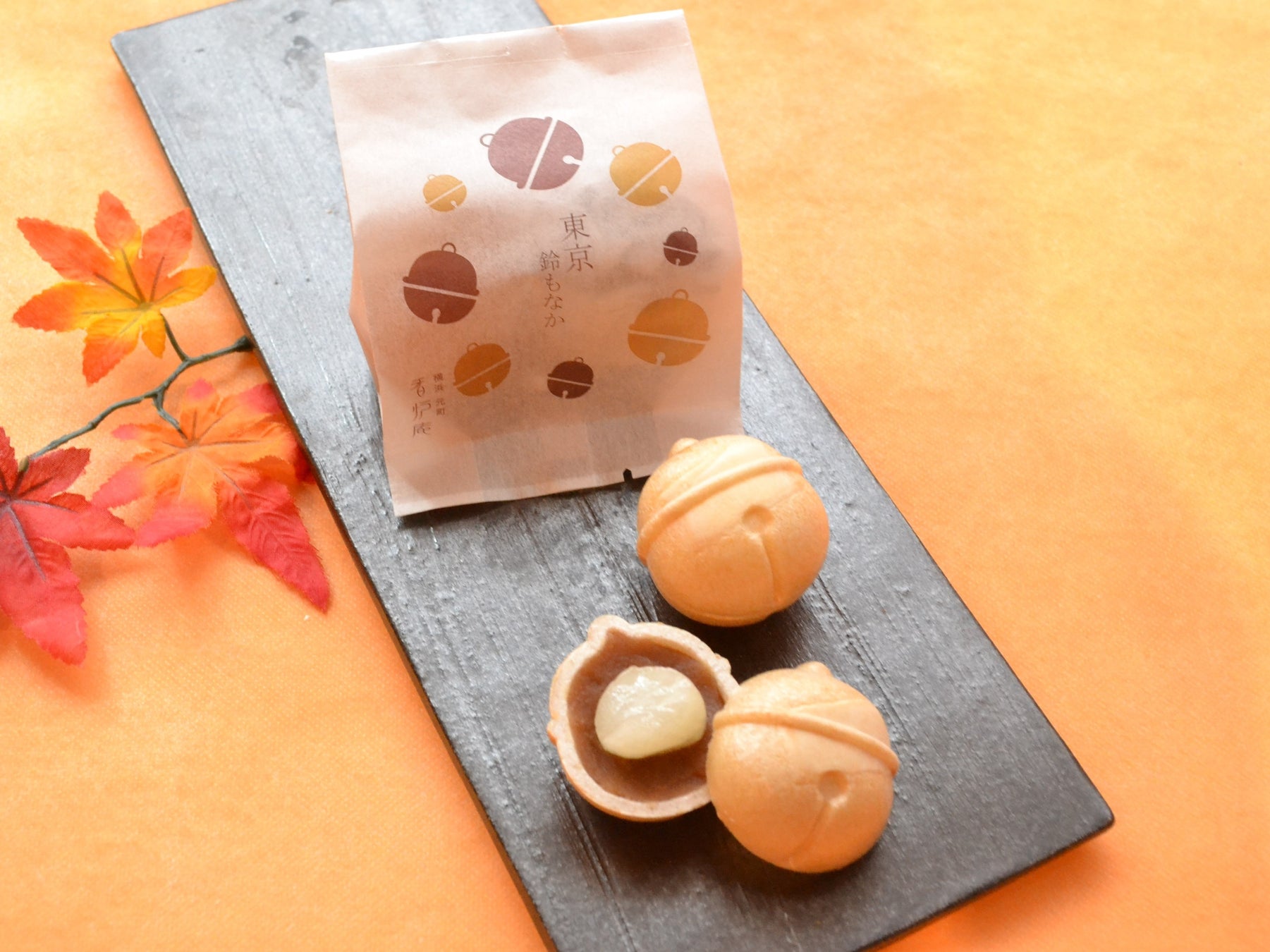東京駅の待ち合わせ場所「銀の鈴」をモチーフにした人気商品「鈴もなか」。秋限定・モンブラン餡の季節がやってきました。ふくよかな求肥入り、そして珈琲パウダー(ラム酒入り)でほんのり大人な味わいのモンブラン餡が楽しめます。