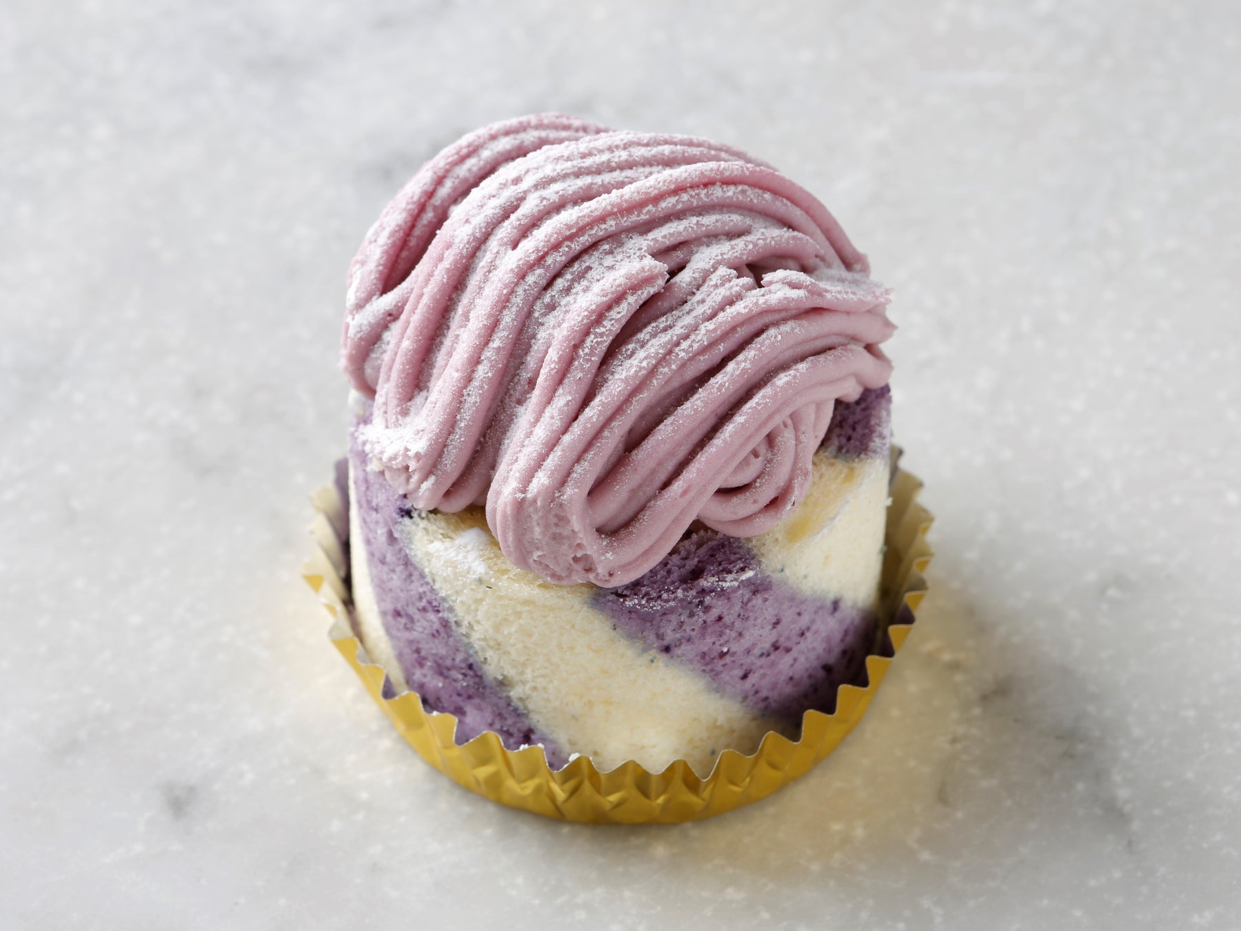 秋の味覚、色鮮やかな紫芋を使用したケーキ。紫と白のコントラストが美しいスポンジケーキの上に、紫芋とフレッシュクリームをミックスし、まろやかに仕上げたクリームを絞りました。とろけるような食感をお楽しみください。