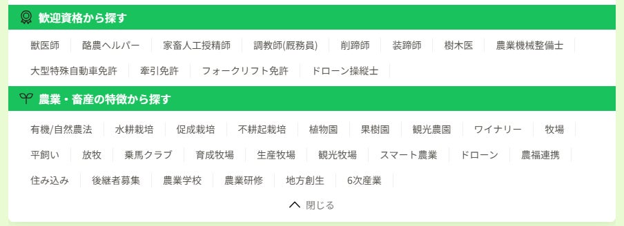農林水産業専門の人材サービス「農業ジョブ」新機能リリース〜「農業・畜産の特徴」「歓迎資格」から検索可能に〜