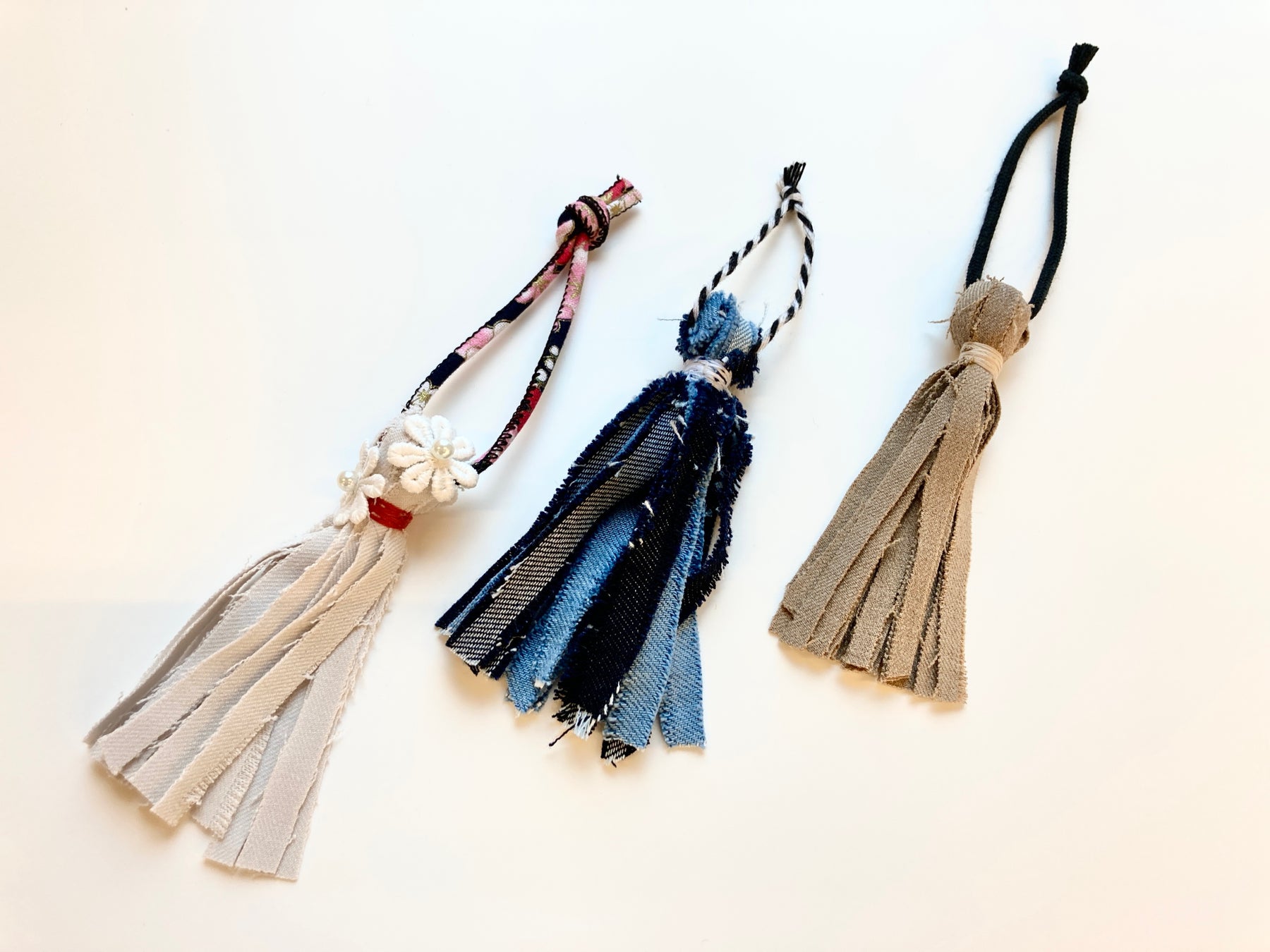 ジーユー商品の裾上げで生まれるハギレを再利用した、オリジナルのタッセルチャーム作りです。