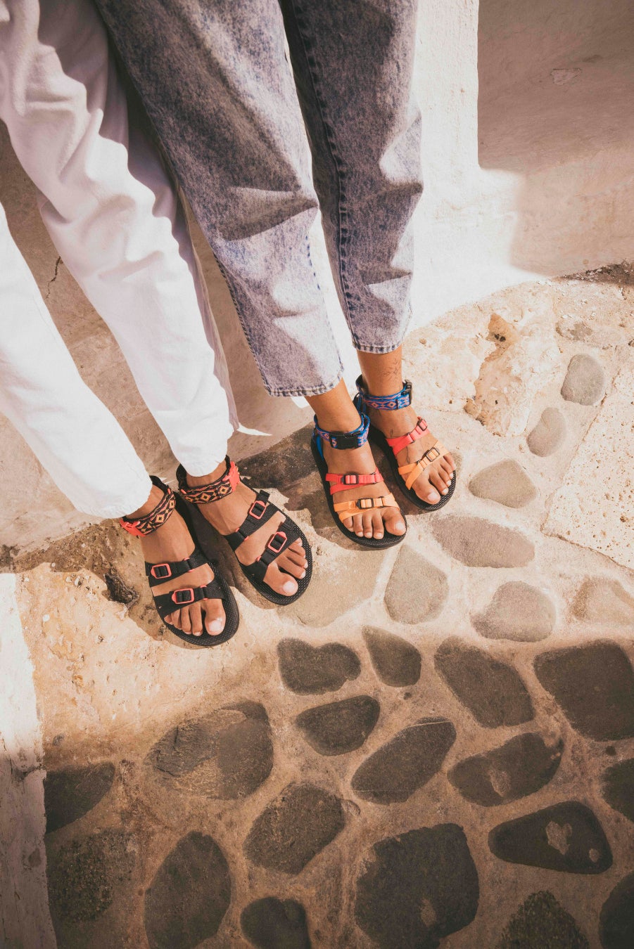 90年代のサンダルのストラップをカラフルなカラーでリメイク