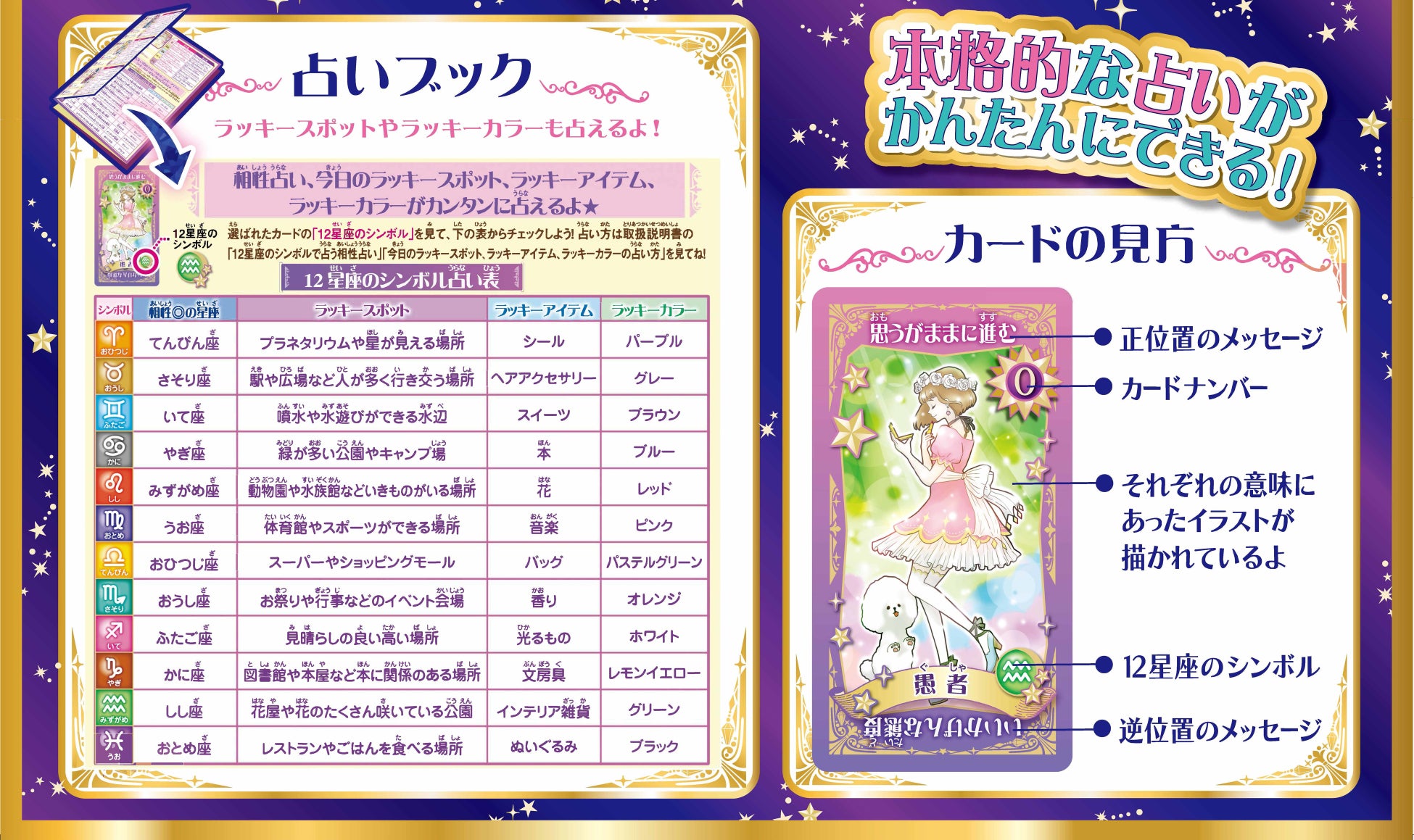 また、占いブックはそれぞれのカードの説明や12星座のシンボル占い表などが掲載されており