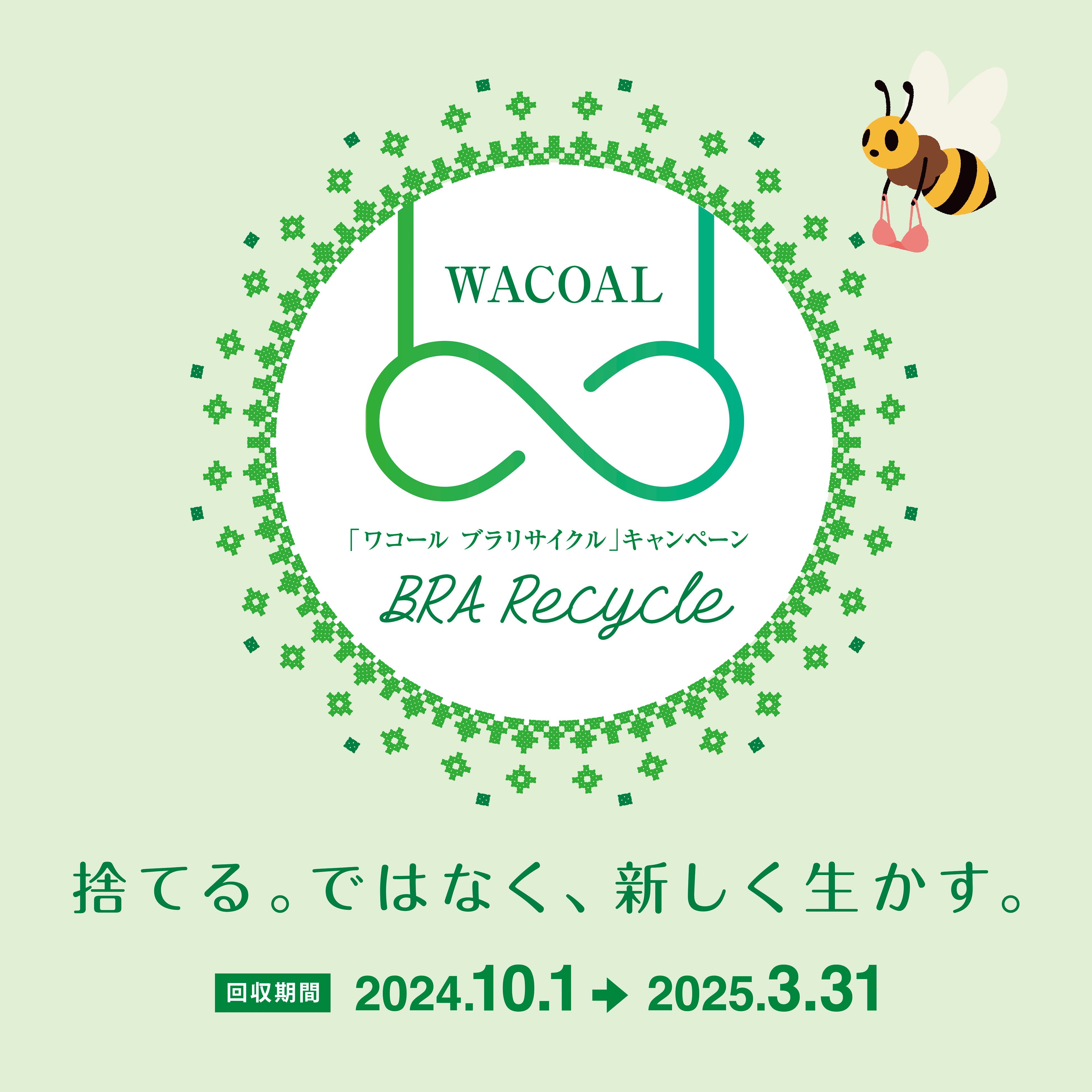 株式会社ワコール(本社:京都府京都市、代表取締役社長執行役員:川西啓介)は、毎年恒例の「ワコール ブラリサイクル」キャンペーンを本年度も実施します。2024年10月1日(火)から2025年3月31日(月)までの期間、お客さまが不用になったブラジャーをワコールの国内店舗およびグループ店舗、さらにワコール公式通販サイト ワコールウェブストアでも回収いたします。回収したブラジャーはリサイクルプロジェクト「BRING™」と提携した工場でリサイクルされ、プラスチックの原料などに生まれかわります。