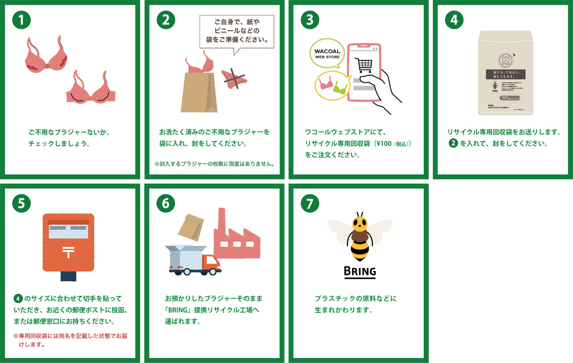 (4)「ブラリサイクル専用回収袋」をワコールから送付。