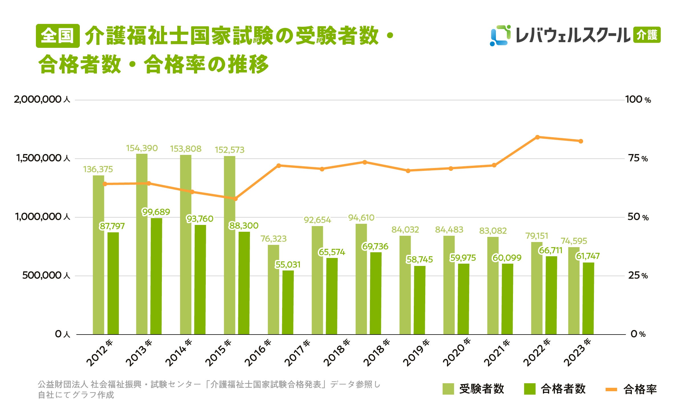 全国の合格率は82.8%、受験者数・合格者数は減少傾向