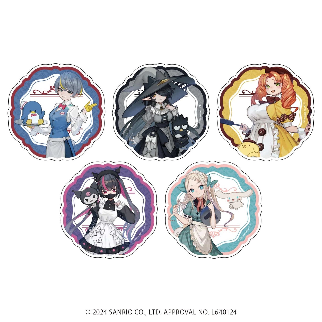 直径5.7cmの缶バッジは、女の子たちの表情がよく見えるアップver.と、サンリオキャラクターズも一緒に描かれた引きver.の2種類があります。