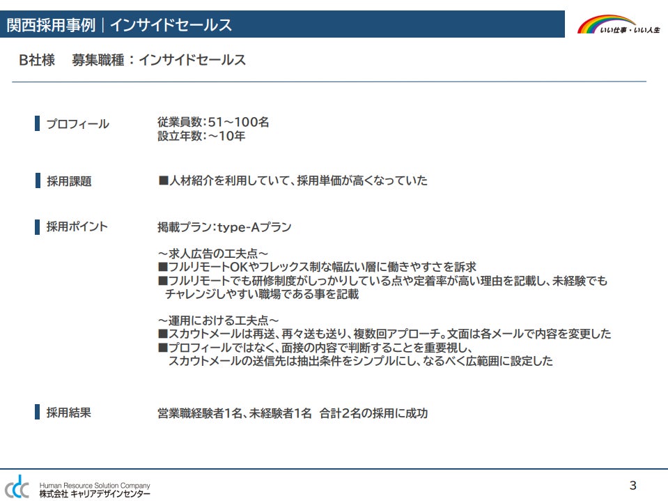 職種別や、従業員規模別で関西エリアの採用成功事例をご紹介しています。