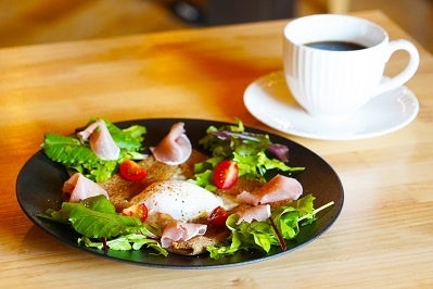本カフェは、コーヒーや紅茶、フレッシュジュースなどのドリンクメニュー以外に、富岡シルクや養蚕で知られる地域の特色を活かした「桑の葉オレ」を提供します。また、名前の由来にもなった、フランスにゆかりがある富岡製糸場にちなんで、フランスの「ガレット」をフードメニューとして提供します。今後は、地域の野菜や果物を取り入れた新メニューや限定メニューも考案していく予定です。