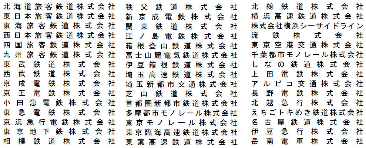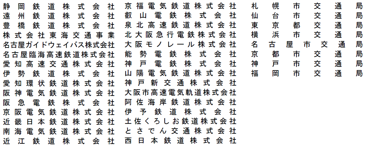 (協力)一般社団法人日本民営鉄道協会、一般社団法人日本地下鉄協会、