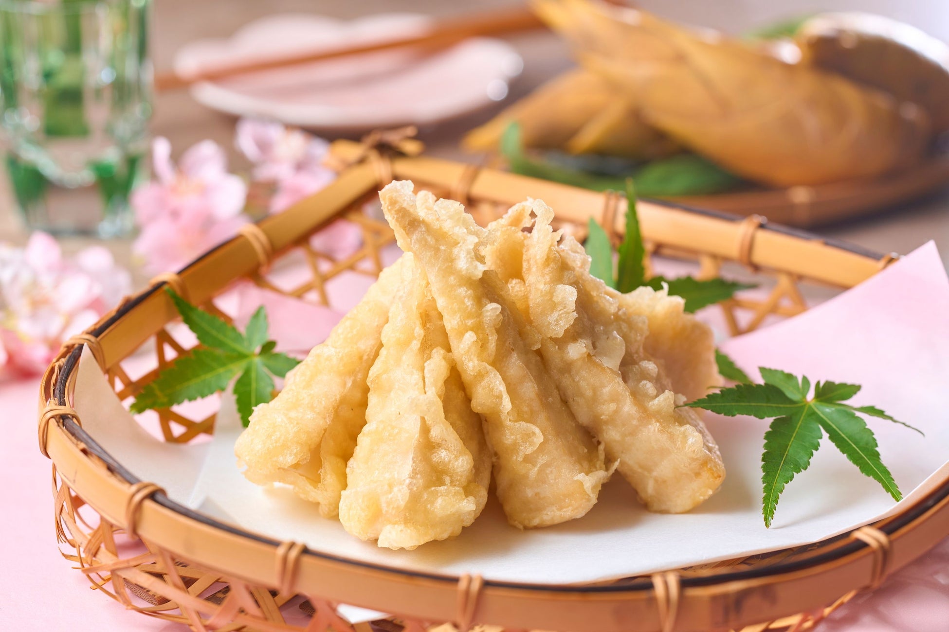 食感と香りが楽しい筍の天ぷらや脂が乗った鰆と春野菜のマリネなど、旬の素材を贅沢に使用。