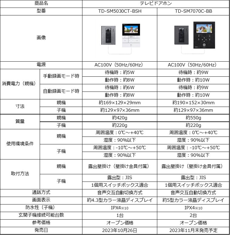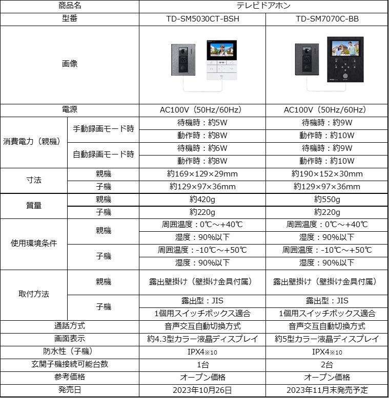 ※4:TD-SM3010T-WSH・TD-SM3010-WSHは5秒間、TD-SM5030CT-BSH・TD-SM7070C-BBは10秒間の動画を録画。