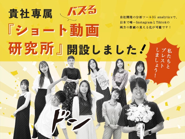 Instagramフィードのみならず今注目のTikTokショート動画に特化したプランも用意しております。Z世代のマーケティングを考える上で、無視できないチャネルとなったInstagram・TikTok 2つのプラットフォームにて企画、撮影、コンテンツ作成、毎日の投稿作業、月次打ち合わせを実施。専任担当を付けてアカウントの最大化を目指し、企業のブランディング・認知・集客を目的とした運用とサポートを実施いたします。 |