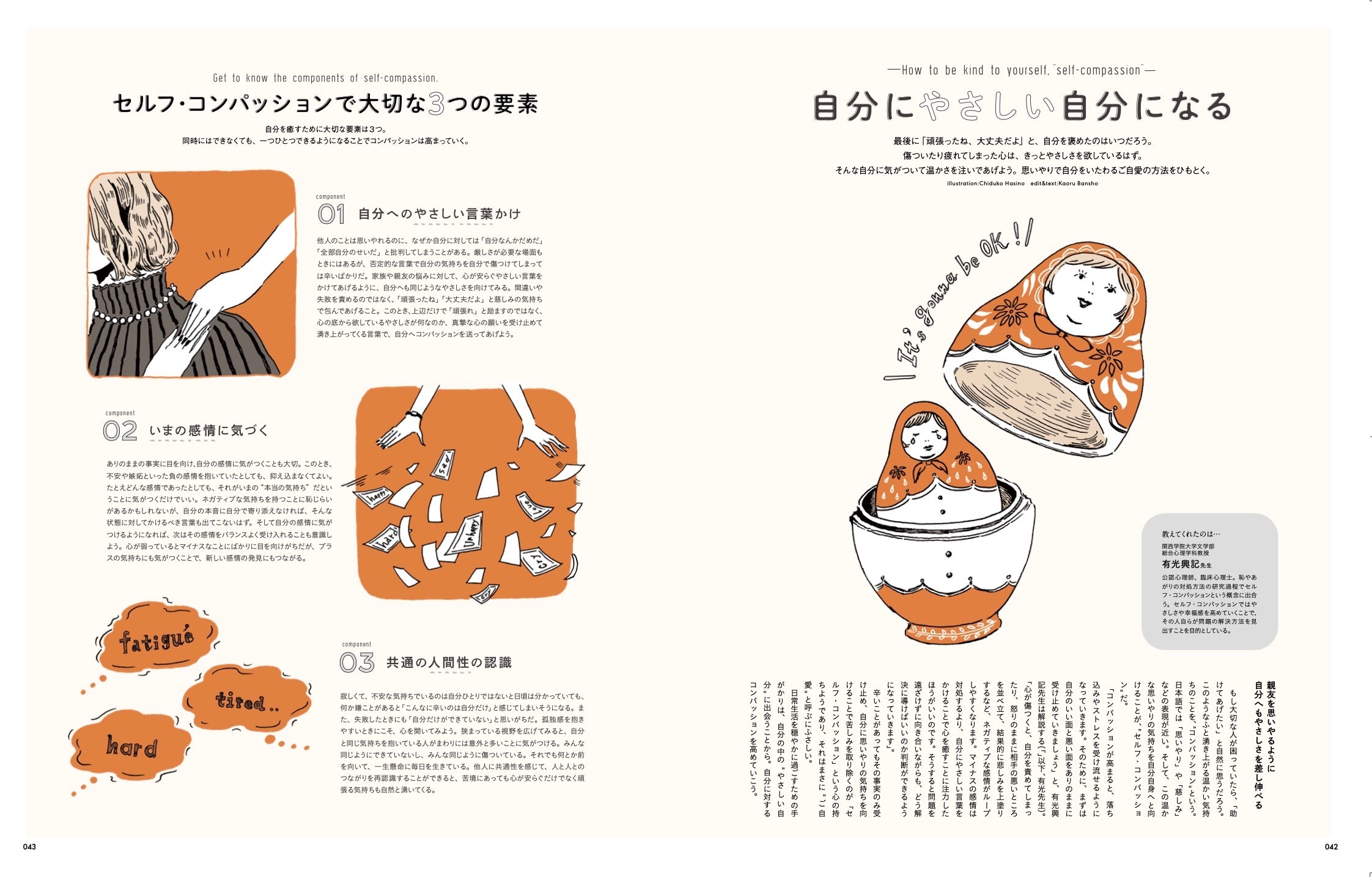 ヘルス&ビューティマガジン『kiitos.(キイトス)』の最新号 vol.21が12月23日(木)より発売中です。 メールや手紙の末尾に添える「くれぐれもご自愛くださいね」という言葉。なにげなく使う、この“ご自愛”には「自分で自分をいたわってあげてね」そして、「いまの元気な状態を維持してくださいね」という意味が込められています。自分をいたわる方法はどんなものでもよく、ただ大切なことは、毎日少しずつでも自分のための“ご自愛時間”をつくってあげること。今回は、身体の内側と外側、心までもたっぷりといたわるためのアイデアを特集。これをきっかけに、あなたなりのご自愛の方法や時間を見つけてください。