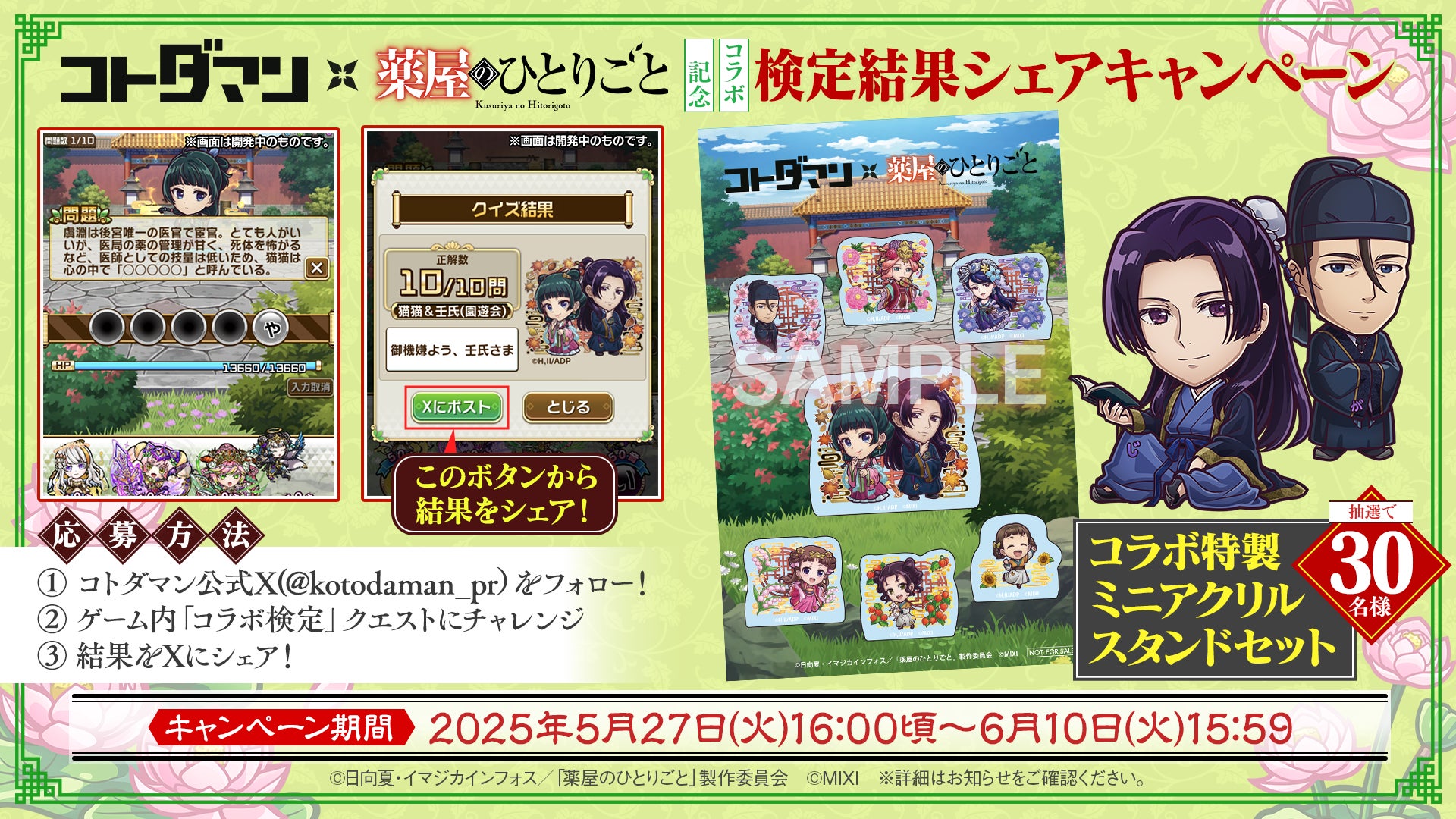 コトダマン × TVアニメ『薬屋のひとりごと』コラボ記念 検定結果シェアキャンペーン |