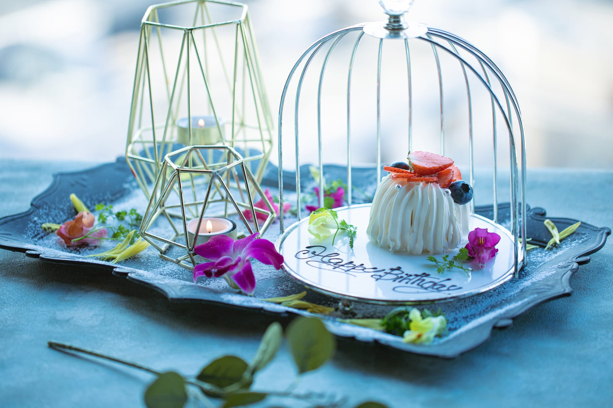 ランチでもディナーで人気の記念日ケーキが付けられる。