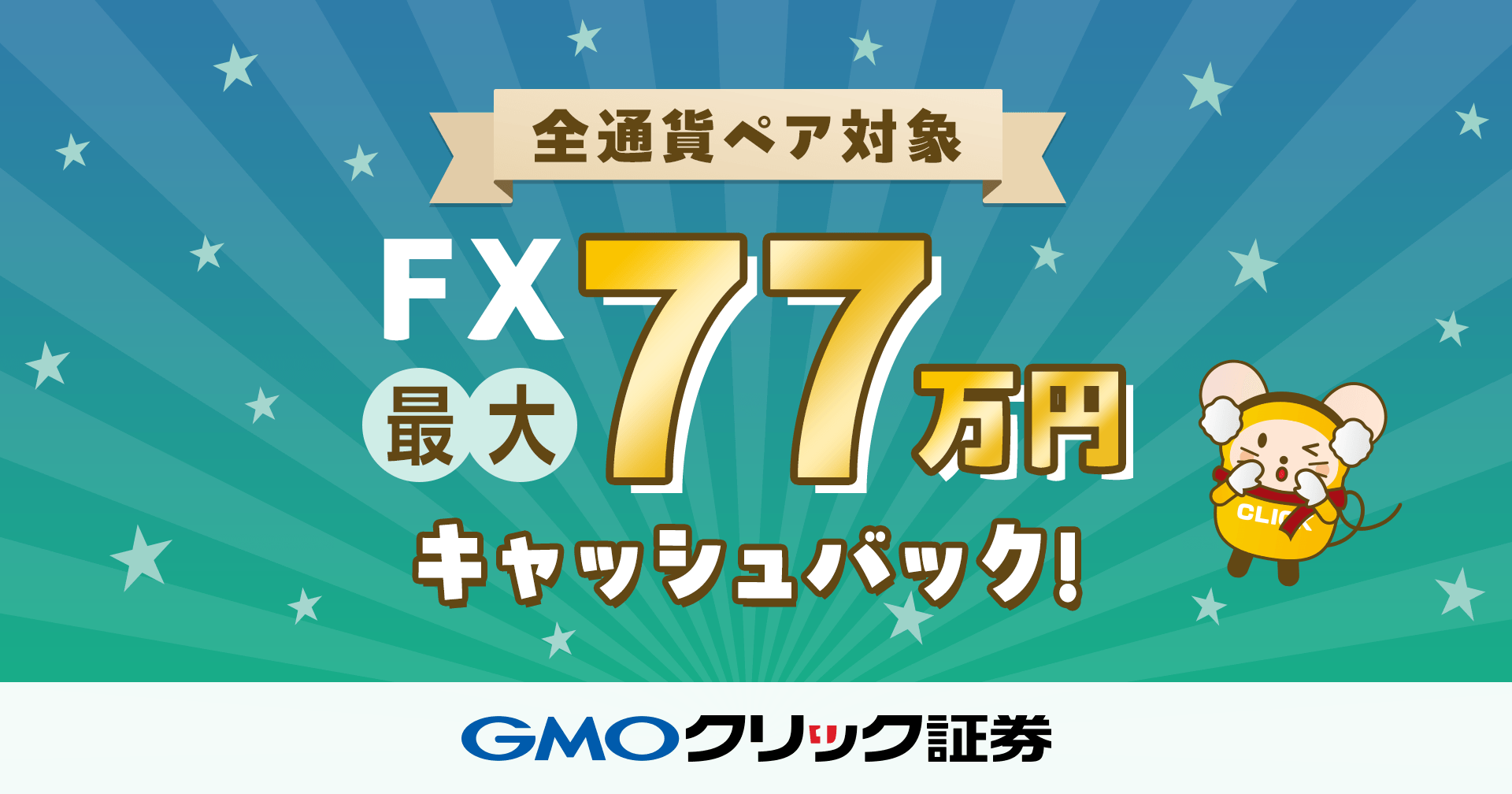 GMOクリック証券:「【FX全通貨ペア対象】最大77万円キャッシュバックキャンペーン!」開始