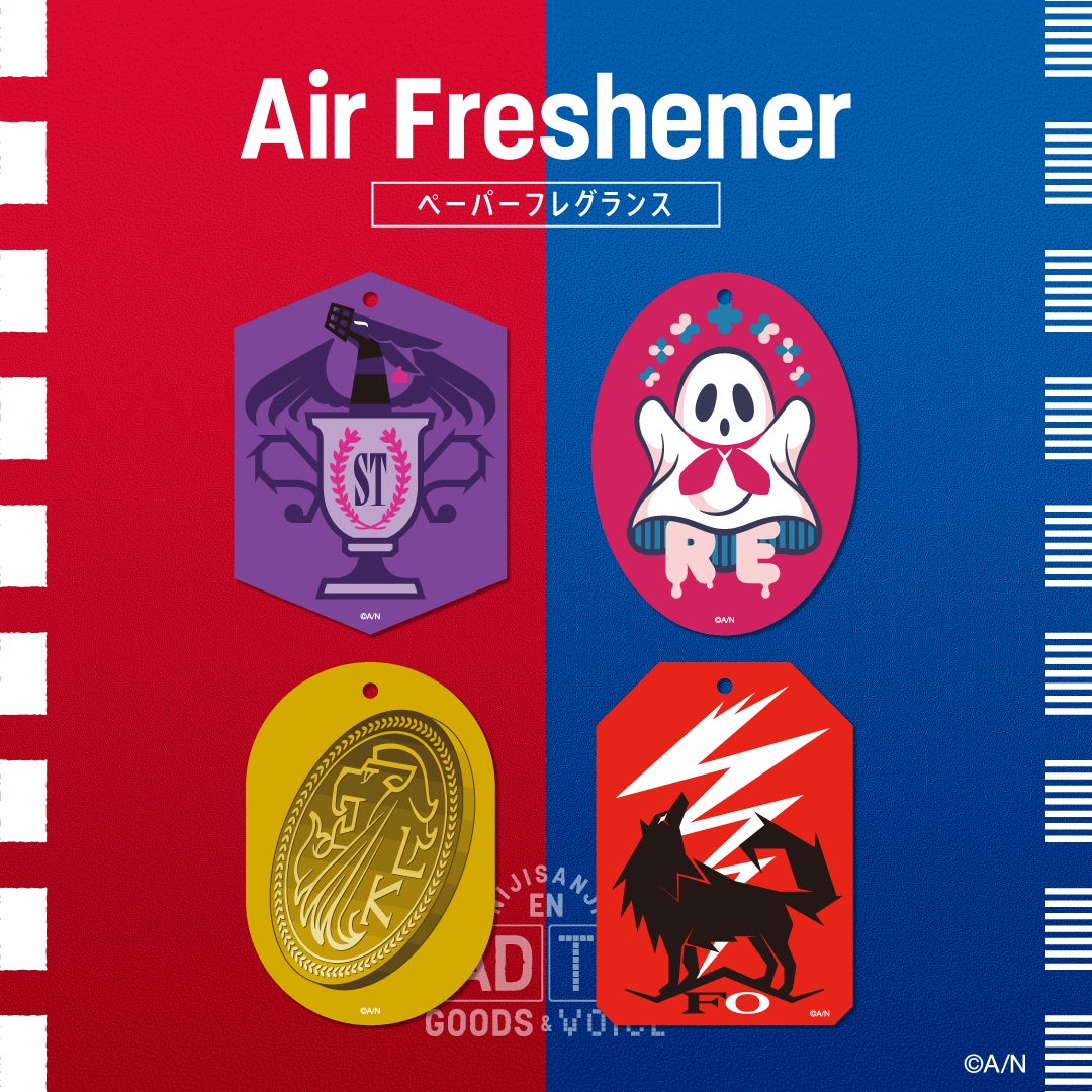 クリアファイル、箔押し缶バッジ、ダイカットクッション、アクリルキーホルダー、ペーパーフレグランス