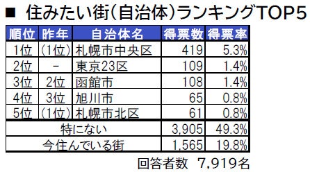 •「住みたい街(自治体)ランキング」は、北海道居住者による全国の自治体を対象とした2022年回答を集計しました。