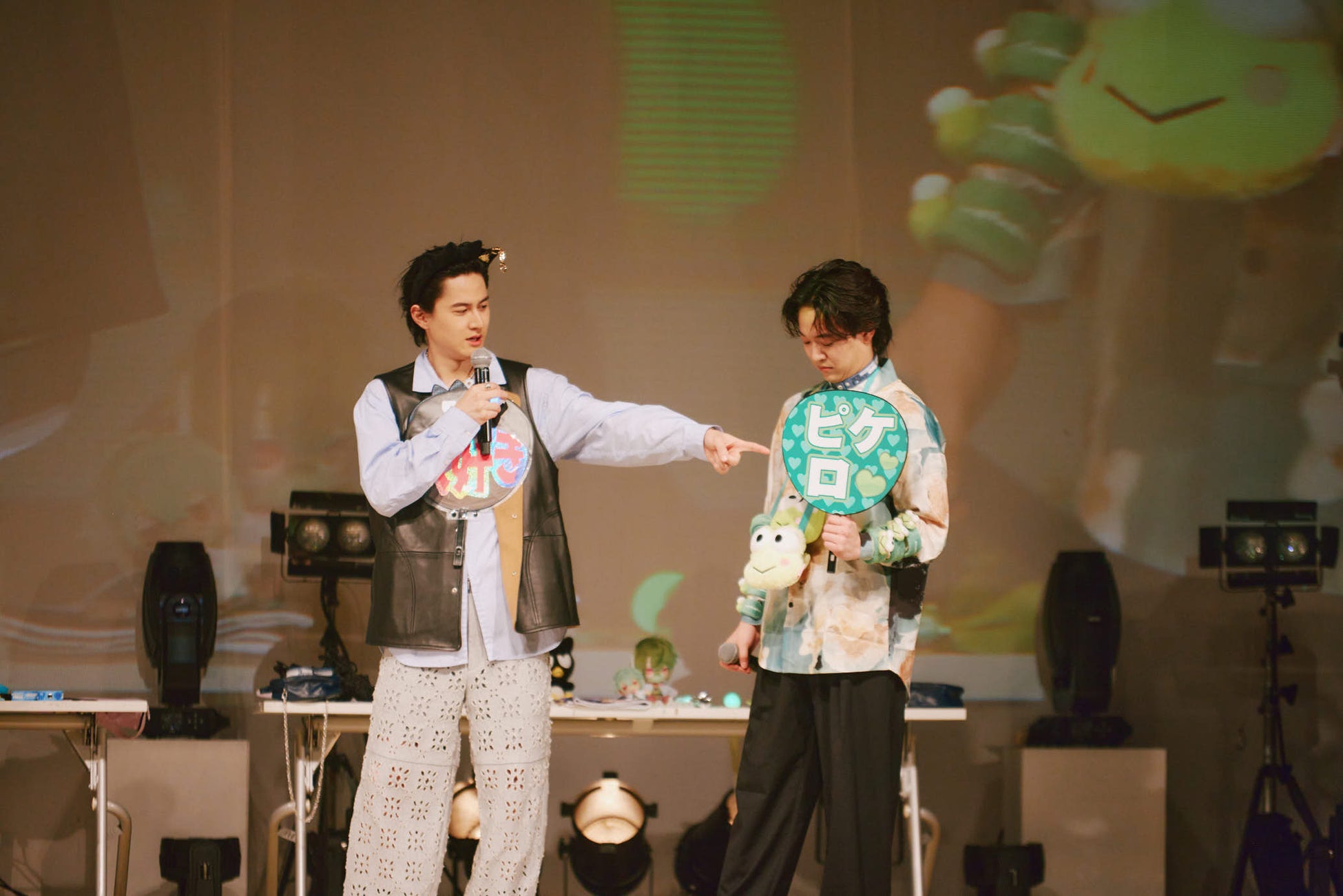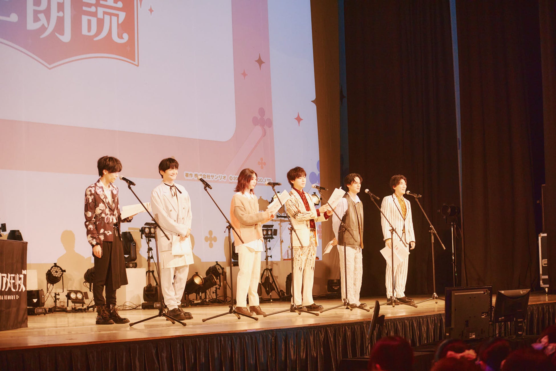 株式会社サンリオ(本社:東京都品川区、社長:辻󠄀 朋邦、以下サンリオ)は、4月6日(日)にサンリオピューロランドにて、1日限りのファンミーティングイベント「推し活ピューロランドフェス×フラガリアメモリーズ」を開催しました。第一部と第二部で異なるサンリオキャラクターや豪華声優陣が登場し、“推し活”をテーマに生朗読やコーディネート対決など様々な企画を実施。会場に集まった約400人のファンを魅了しました。本イベントレポートでは、梶原岳人さん、日向朔公さん、島﨑信長さん、坂田将吾さん、武内駿輔さん、畠中祐さん、ハローキティ、クロミ、あひるのペックルが登場した第一部の様子を中心にお届けいたします。