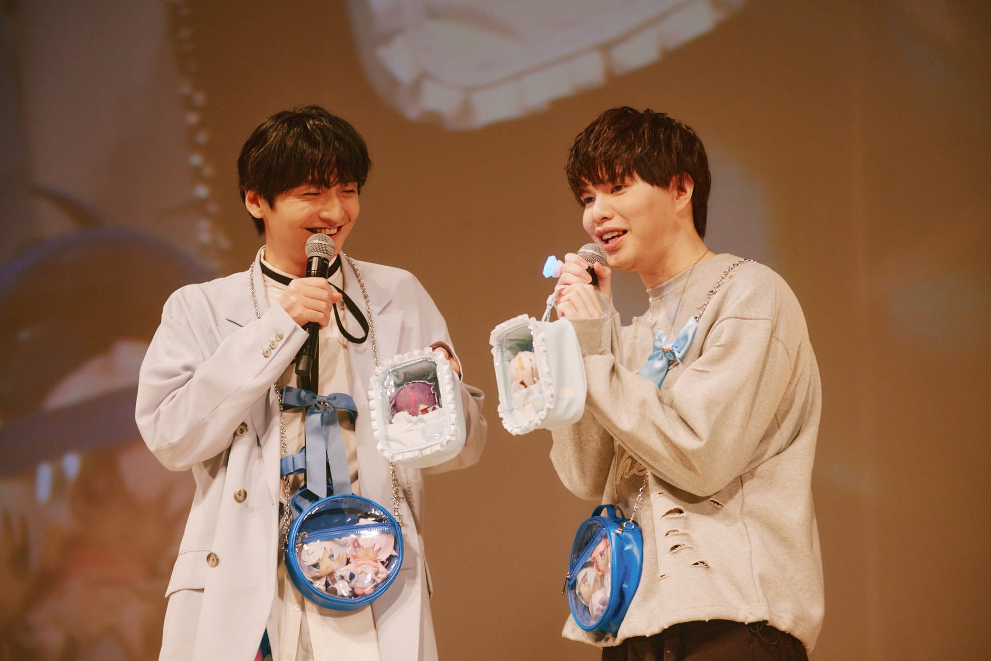 会場に用意された様々なファッションアイテムを使って各ブーケで協力し、「推士活(※)コーディネート」を披露するコーディネート対決がおこなわれました。テーマは「推しに捧げる!推士の本気勝負ファッション!」。主(ロード)への愛を全力で伝えるべく、声優キャストたちがブーケごとに思い思いにコーディネートを考案しました。それぞれのキャストが演じるフラガリアが仕える主(ロード)にちなみ、ハローキティのパッチンバンドを腕にたくさんつけたコーディネートや、バッドばつ丸、あひるのペックルのフェルトハットを使ったコーディネートなどを披露しました。お客様の拍手の大きさとMCの畠中祐さんの判定によって決まった勝利チームは、シナモロールのぬいぐるみだけを使ったシンプルなコーディネートと、全身にクロミのアイテムを散りばめたコーディネートの二つで色々な“推し方”を表現したBLUE BOUQUETでした。