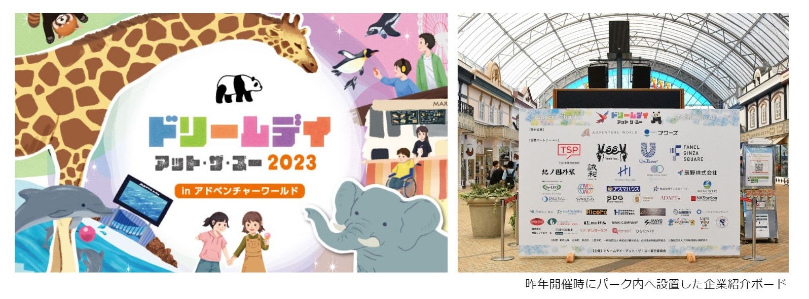 「ドリームデイ・アット・ザ・ズー(主催:和歌山ドリデイ2023実行委員会)」を2023年11月23日(木・祝)アドベンチャーワールド(和歌山県白浜町)で開催いたします。障がいのあるお子さまとそのご家族を貸切のパークへ招待するという特別な1日を叶えるため、本イベントにご賛同いただける企業・団体様を対象とした「協賛パートナー」を募集いたします。