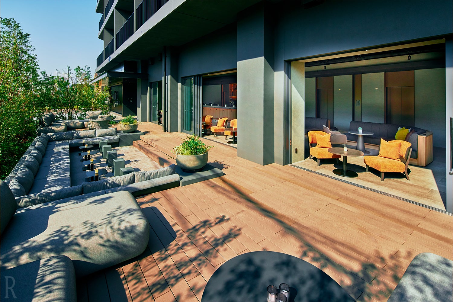 開放感あふれるカフェラウンジでは、旅の合間にほっとひと息。テラス席は愛犬の同伴も可能なため、大切な家族とともにゆったりとした時間をお過ごしいただけます。