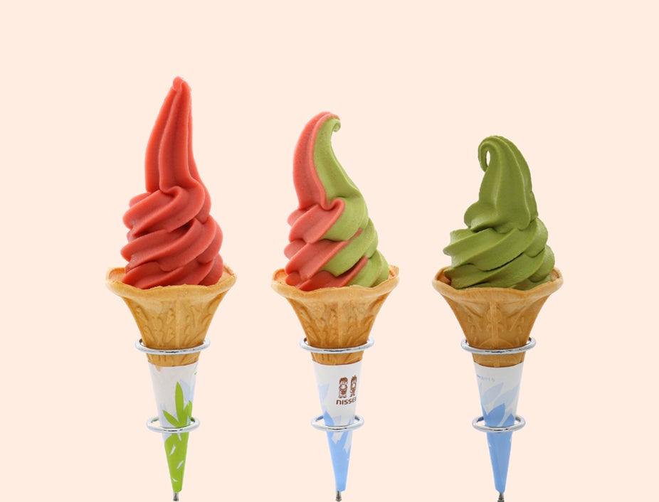 園内のレストラン「オン&オフ」では、コキアシーズン限定メニューの「コキアカレー」を販売いたします。コキアカレーは、紅葉したコキアをイメージした赤いルーが特徴の辛口カレーとなっています。また、スイーツショップでは「コキアソフト」を販売いたします。緑コキアをイメージした抹茶味、赤コキアをイメージしたいちご味、そして 2 つを合わせたミックスの 3 種類をご用意しており、味だけでなく見た目もお楽しみいただけます。