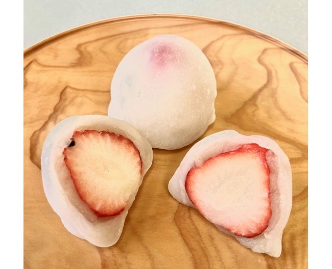 桃の香りのするブランドいちご「桃薫」を使用したいちご大福。白あんと大福生地のバランスがいちごのよさを引き立てます。