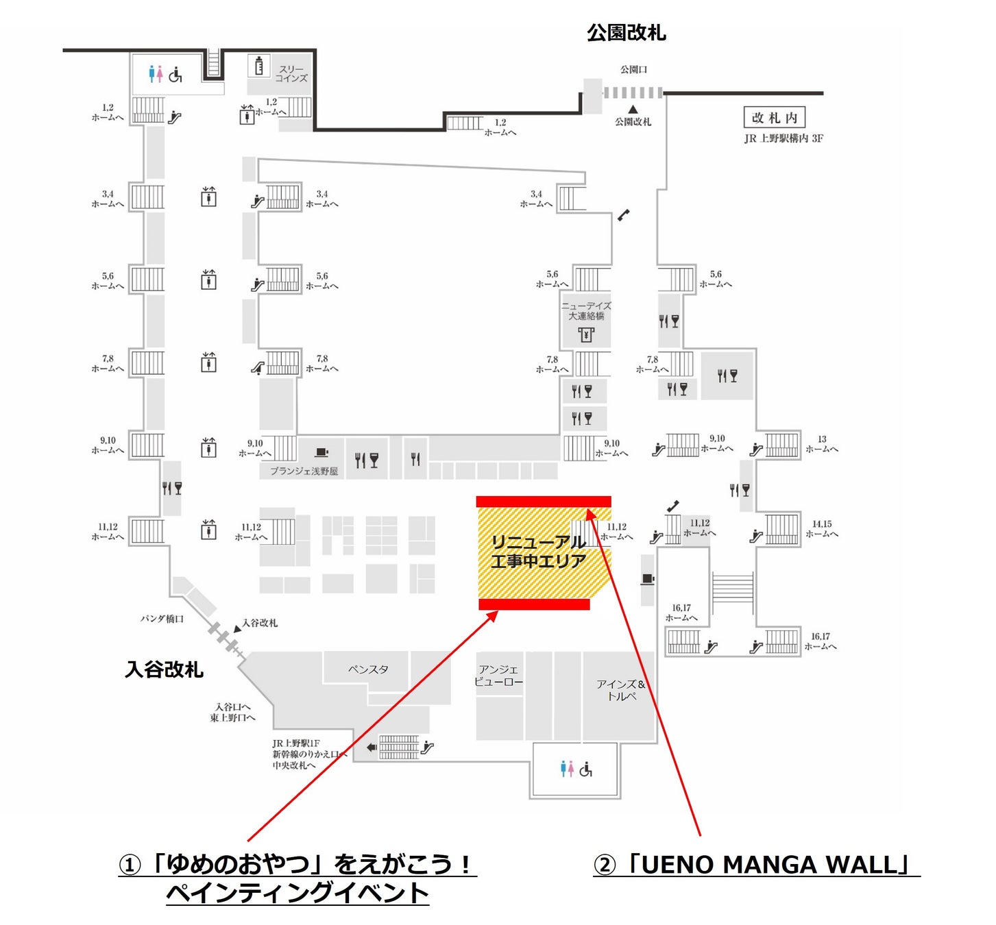 場 所:JR上野駅3階コンコース(フロアマップ①)