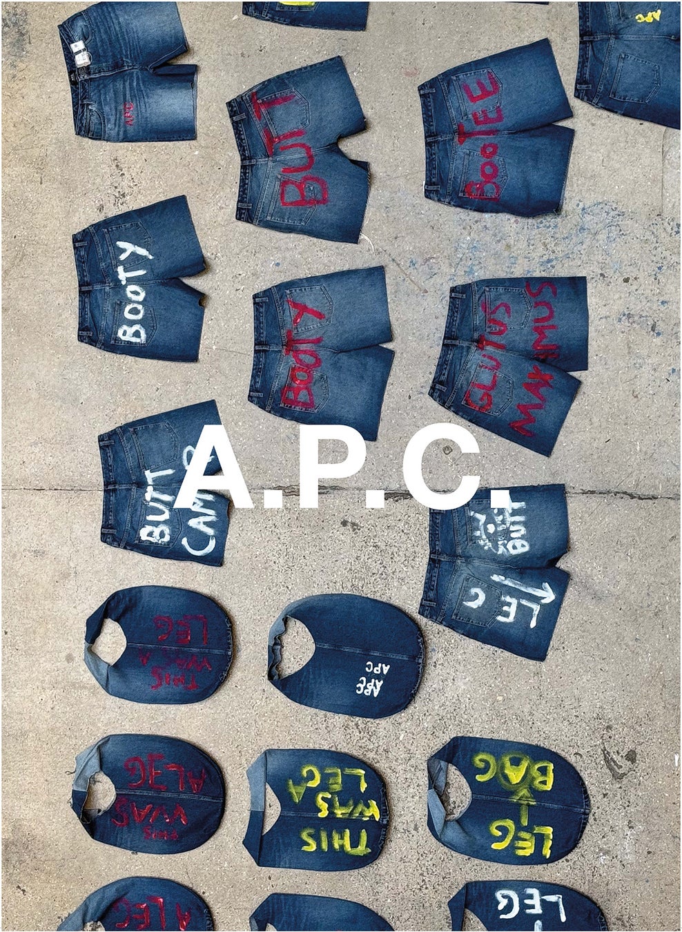 フロントロゴ“Atelier de Production et de Creation”は、生産と創造の工房を意味する、A.P.C.の正式名称。