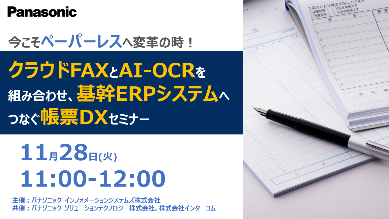 【ウェビナー】11/28(火) 今こそペーパーレスへ変革の時!クラウドFAXとAI-OCRを組み合わせ、基幹ERPシステムへつなぐ帳票DXセミナー