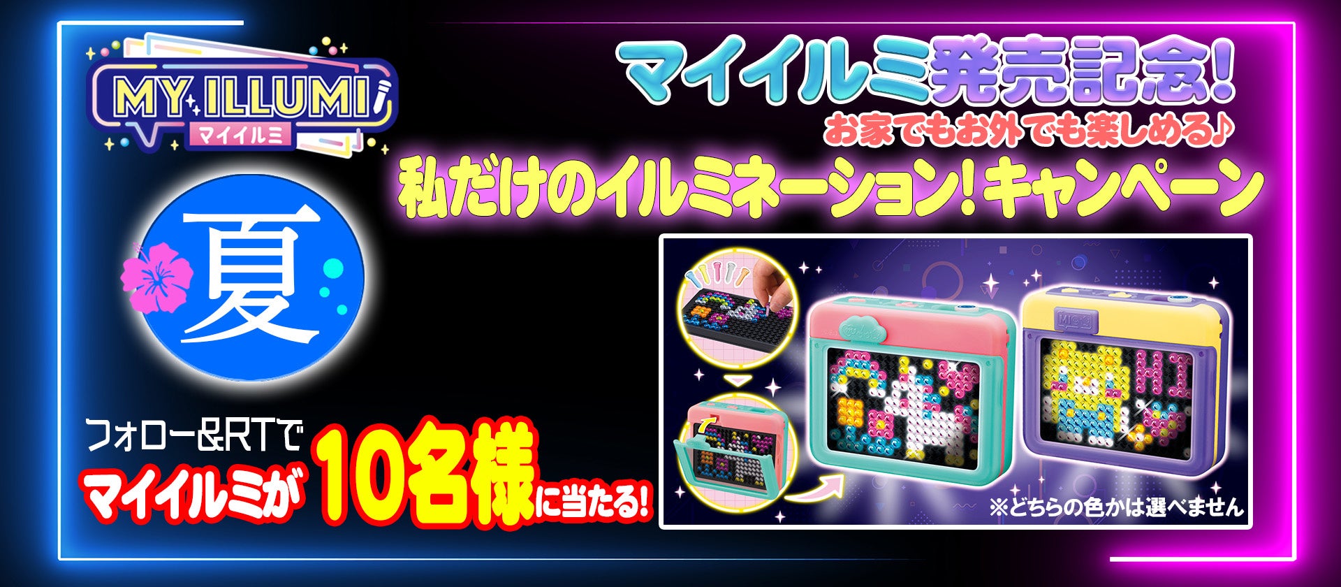 株式会社メガハウス (バンダイナムコグループ、代表取締役社長:佐藤明宏/東京都台東区)は、自分だけのオリジナルイルミネーションが作れる新感覚ホビー「マイイルミ」の発売を記念した『私だけのイルミネーション!キャンペーン』を2022年7月22日(金)~7月29日(金)15時までの期間で実施いたします。