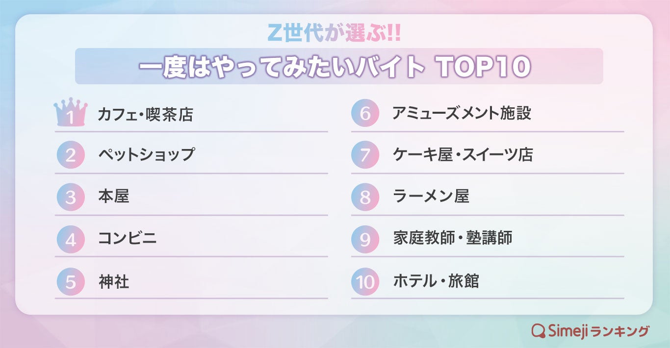 【Simejiランキング】Z世代が選ぶ!!「一度はやってみたいバイトTOP10」