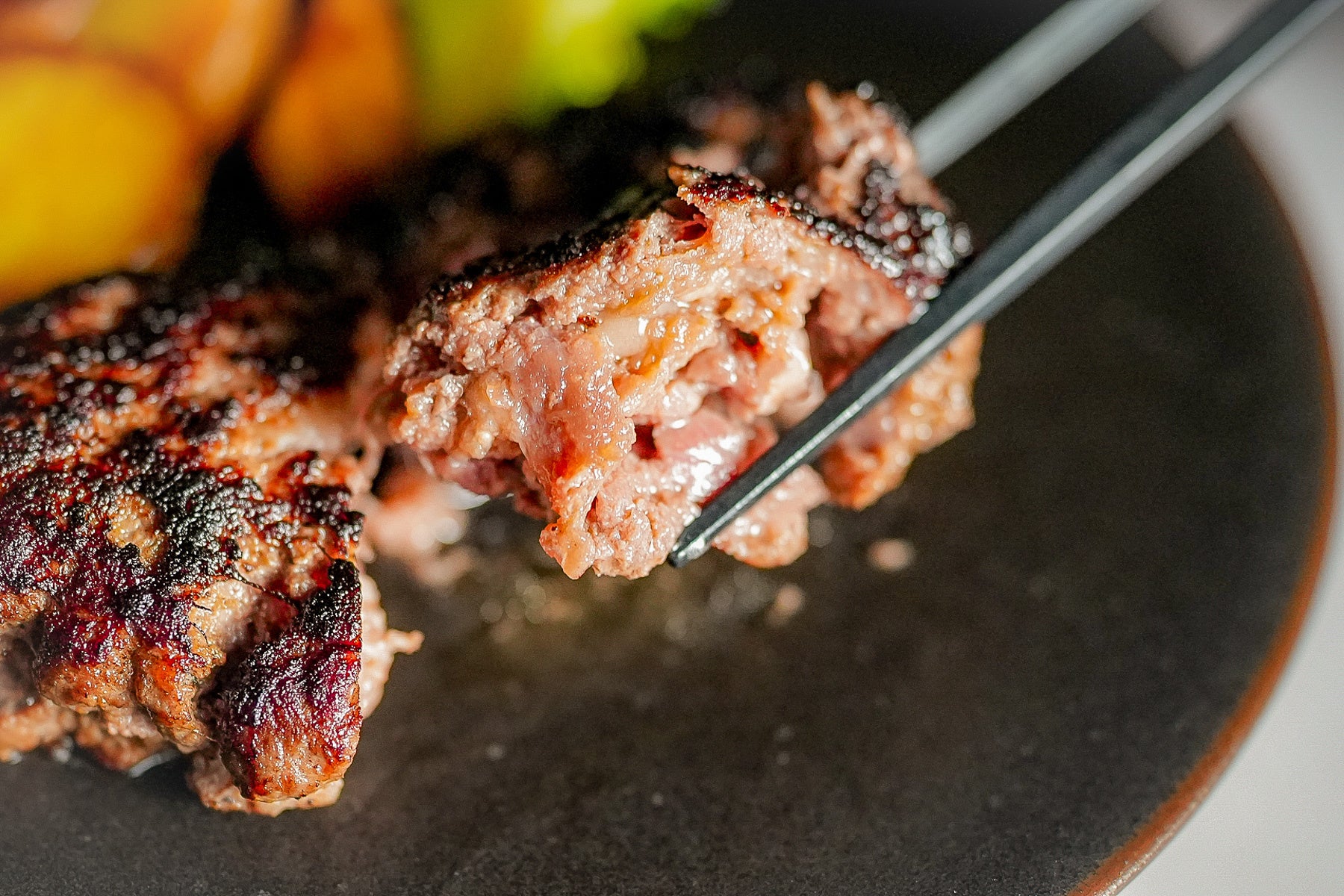 ワンダーテーブルは、食のサステナビリティの取り組みの一つとして、国内流通において最も希少な和牛「いわて山形村短角牛(以下、短角牛)」の子牛を委託飼育し、自社レストランにて調理して提供する取り組みを行っています。『しおた』は、短角牛の魅力を伝えるべく、その短角牛を使用したバラエティー豊かな商品をオンラインショップやデリバリー等で販売しています。その『しおた』から、この度、新商品をリリースとして、短角牛にプレミアム和牛「里山牛」を配合したハンバーグ を販売します。肉用全体のわずか1%とされる希少な短角牛は、自然の中で育つため、肉質は低脂肪で味の濃い赤身が特徴です。「里山牛」は、自然放牧で育てられたグラスフェッドの黒毛和牛です。赤身の旨みが詰まった牛肉本来の濃厚な味わいを楽しめます。短角牛を13mmの超粗挽きに、「里山牛」は細挽きにすることで、赤身の旨みとジューシーさを最大限に引き出し、贅沢なハンバーグに仕上げました。その配合比率は、何十回と試作を重ねて導き出した黄金比です。お肉好きだけでなく、環境や健康に関心がある方にも注目いただきたいハンバーグです。