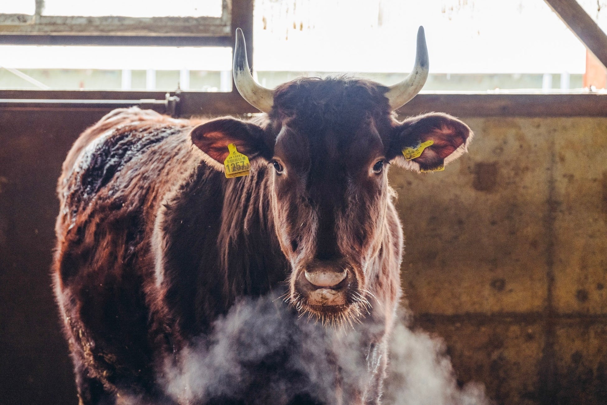 日本短角種という4種類ある和牛品種の一つで、江戸時代の南部藩で飼われていた南部牛をルーツにもちます。1957年に四大和牛の一つに認定され、和牛全体の0.5%しか流通されない最も希少な牛です。牛たちは、夏山冬里式という伝統的な飼い方により育てられ、春の山間の放牧地に放たれ、思うままに牧草を頬張り、子牛と母牛は一緒にのびのびと健康的に育ちます。