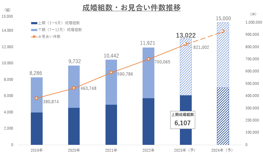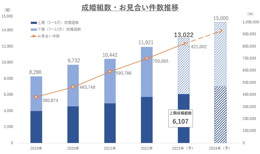 成婚数 国内最多のIBJ、2023年上期に6,107組の結婚カップルが誕生。2023年通期は13,022組と過去最多となる予想。