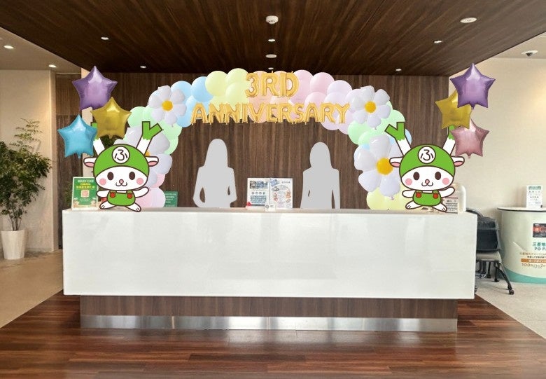 インフォメーションセンター内にふっかちゃんとバルーンによる3周年記念装飾が登場!