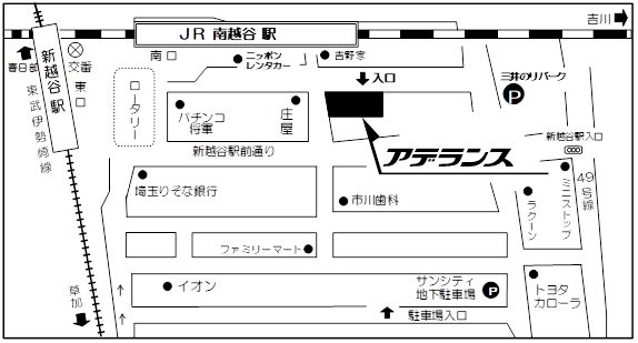 アクセス:東武線「新越谷駅」東口、JR「南越谷駅」南口より徒歩1分