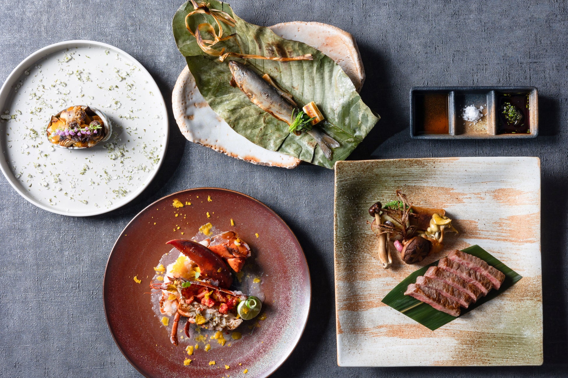 「囲炉裏と日本料理 松風庵」では、1日1組限定のプライベート空間でシェフがお客様のためだけに腕をふるう、五感で楽しむ贅沢で特別なお食事のひとときをお愉しみいただけます。新鮮な活け鮑、活けオマール海老と、飛騨牛、鮎、朴葉味噌など岐阜の食材を使用した松風庵ならではの特別コースをご用意いたしました。目の前で焼きあがる食材の魅力をご堪能ください。