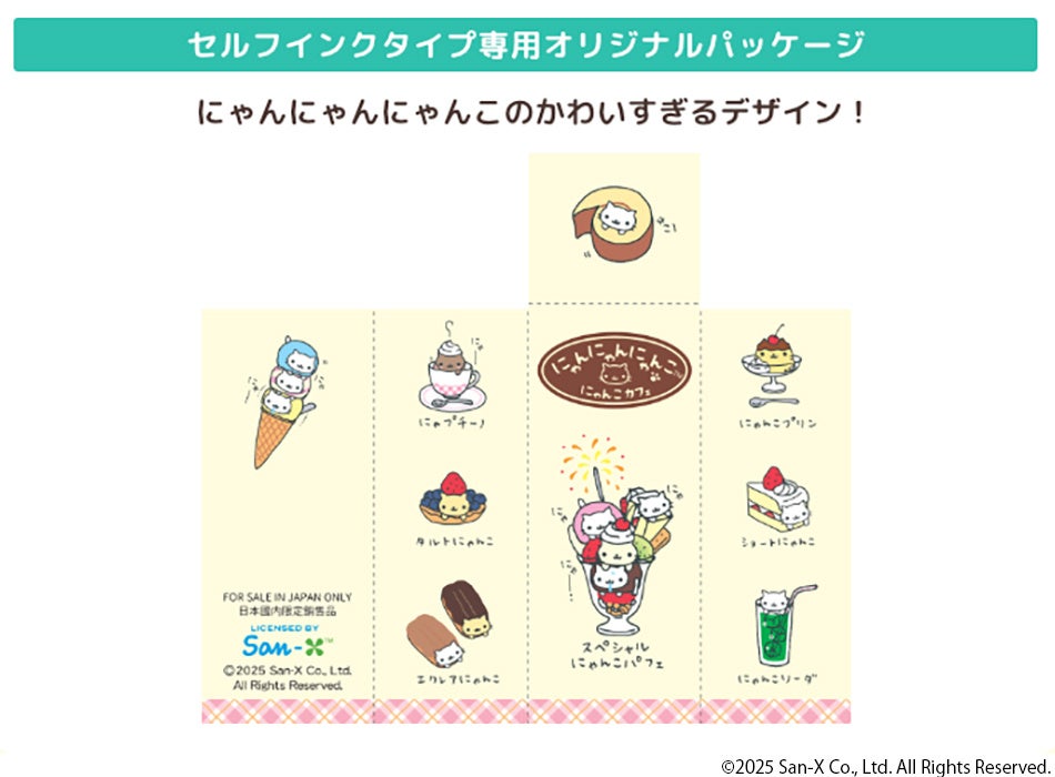 にゃんにゃんにゃんこは、2000年7月に登場した、かわいいにゃんこのキャラクター。食べものなどのものマネが得意なにゃんこたちは、今もなお多くのファンを抱えています。昨年12月に、たれぱんだやアフロ犬、こげぱん、モノクロブーが登場する「San-X レジェンドキャラクター はんこコレクション」を発売した際に、SNSから「にゃんにゃんにゃんこも出してほしい!」というリクエストを多数いただいたことから企画。今回、商品化が実現いたしました。