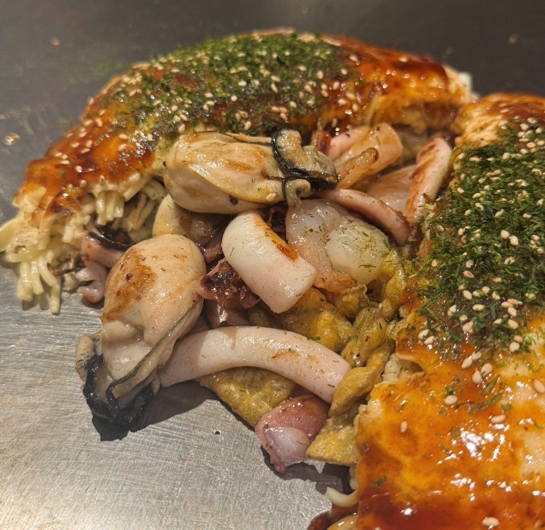 海鮮の旨味をギュッとお好み焼きに閉じ込めました!